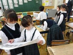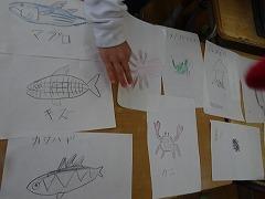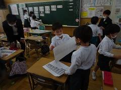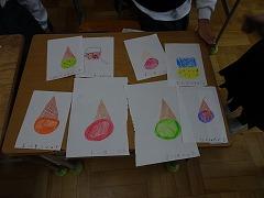 ↓1年生 お店屋さんごっこの準備をしていました。魚屋さん、アイスクリーム屋さん、・・・