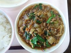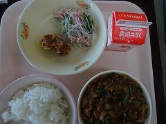 今日の給食は、ポークシューマイ、バンサンスウ、マーボ大根でした。冬は大根のおいしい季節です。マーボ大根にしていただくと、子供たちも喜んで大根を食べることができます。マーボ大根は赤味噌も入っていてまろやかな味付けになっていました。さらに、にんいく、にら、しょうが、干しシイタケもたっぷり入っていて、香り高いマーボ大根でした。