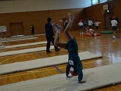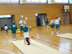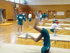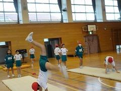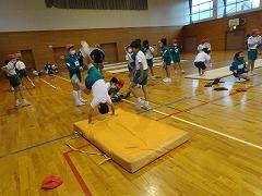 ↑ 5年体育 マット運動で自分の技を磨きました。友達にクロムで撮影して見合いました。