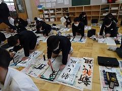 ↓地域の書道家、日展作家の高桑先生をゲストティーチャーにお招きして、書初め練習をしました。3年生以上の皆さんは習字で書初めに挑みます。新年、清らかな心で、美しいく力強く書初めができるように、筆つがいや字のバランスを直接ご指導いただきました。6年生は「将来の夢」に挑みました!