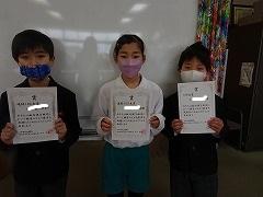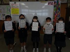 ↑今年最終日も、「漢字100点賞」、「粘り強く頑張ったで賞」を受賞した皆さんがやってきました!。粘り強く助力する姿は本当に素晴らしいです。冬休みも明けもしていますので、まだもらっていない人は、チャレンジして賞状をもらいましょう。