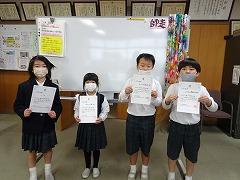 今日の漢字100点賞を紹介します。どのようにしたら100点賞になったかインタビューしたところ、毎週の漢字テストで間違えたところを、家に帰って自学ノートで練習したと答えてくれました。地道な練習を続けてきたのですね。おめでとうございます!