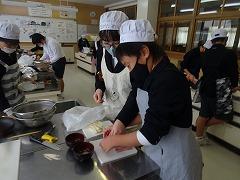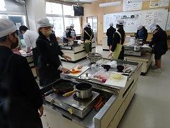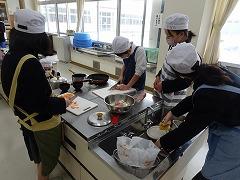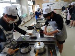 ↓6年生調理実習です。栄養バランスを考え、家庭で作れるおかずを作りました。この実習を生かして、家でも実践してみてください。