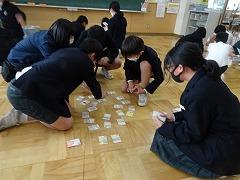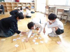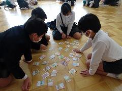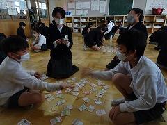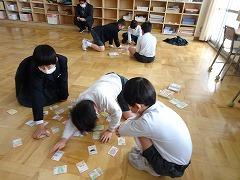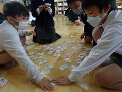 5年生 津幡かるたに挑みました!集中力、俊敏性を鍛えながら、「つばた」を楽しみました。クラスに8セットあるので、グループで楽しむことができます。