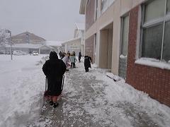 ↓子供たちも進んで除雪をしてくれました。みんなのためにありがとう。このような体験を通して、公共心が育まれます。ありがとうという気持ちを言葉にすることで、感謝の心も育まれます。