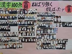 ↓2学期の漢字検定を全校で頑張っています。100点賞、粘り強く頑張ったでしょう、連続100点賞があります。