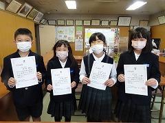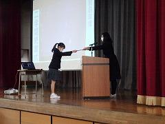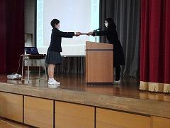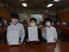 ↑郡市読書感想文の賞状と、読書賞、多読賞の賞状をお渡ししました。2学期一番たくさん本を読んだクラスは、停、中、高学年で1年1組、3年3組、5年1組でした。冬休みは、1日1時間~2時間、本を読んでみましょう。