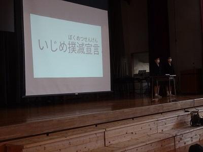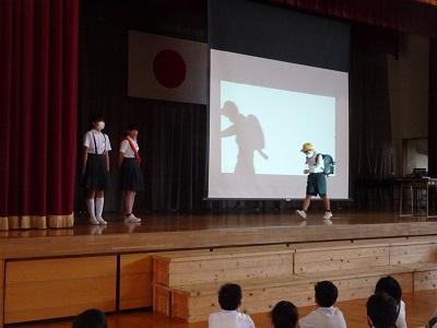 いじめ撲滅宣言のお話や挨拶についての劇もあり,みんなで考えました。