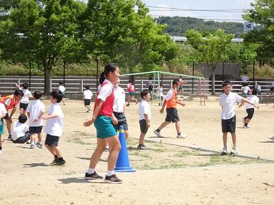 6年生と先生が鬼になって1~5年生を捕まえる「けいどろ」でした。