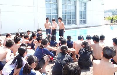 6年生が全校を代表してプール開きを行いました。今日は,プール開き日和でした。