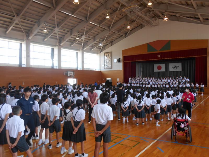 学年関係なくみんなで歌って心が一つになった歌声に感動しました。音楽の力はすごいですね!