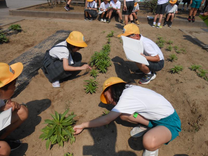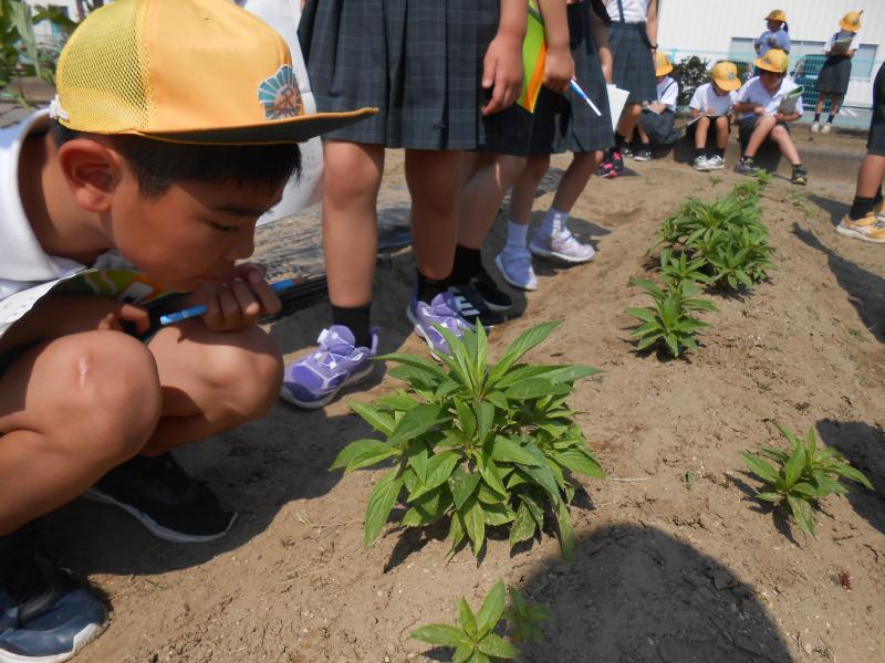 等の意見が出ました。そこで、実際に植えられている畑へ観察しに行きました。