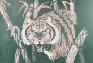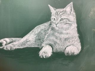 鉛筆でのデッサンとは異なり、チョークで描く黒板アートは苦戦しました。