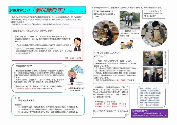 加賀高だより(vol21).pdf クイズ解答:Q1 創立52年目 Q2加賀市大聖寺にある加賀聖城高校のところにありました