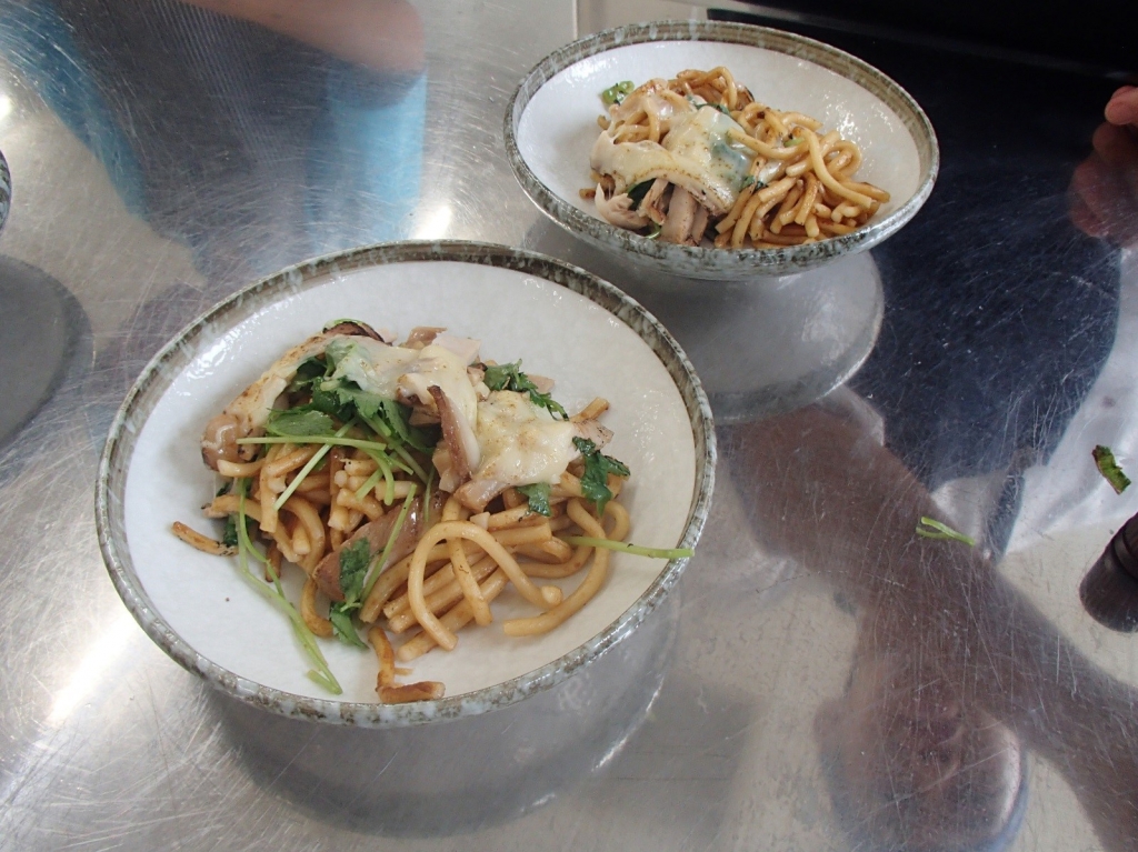| <作り方> ① うどんに油をからませる。 ② うどん→味噌だれ→ネギ、焼豚の順で炒め、醤油をかけて味をなじませる。 ③ うどんを広げ、長方形をつくる。チーズを半分に割り、均等にのせる。 ④ バーナーでチーズをあぶり、1人前ずつ器に盛る。上から三つ葉、温玉をトッピングして出来上がり! |