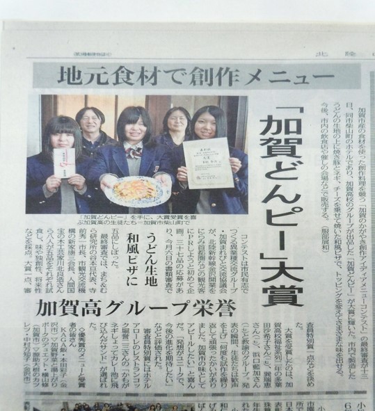 「加賀のかがやき創作メニューコンテスト」で大賞受賞