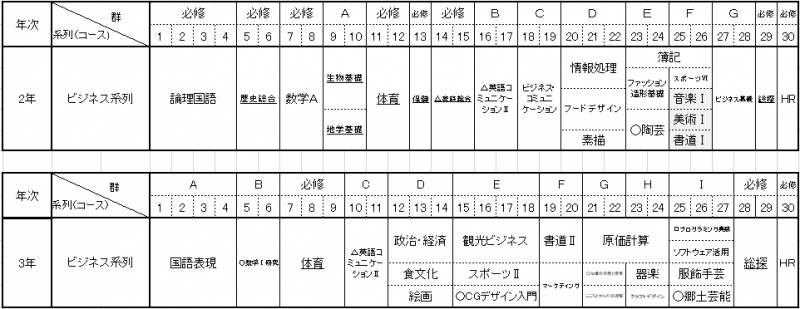 ※ 四年制大学への進学を考える場合はオレンジ色の科目を選択