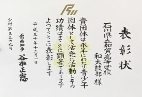 加賀高校和太鼓部は、南加賀地区唯一の高校和太鼓部です。