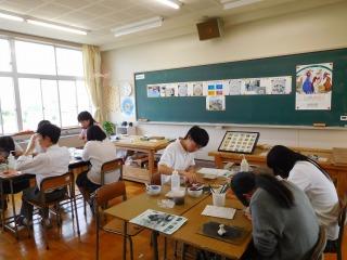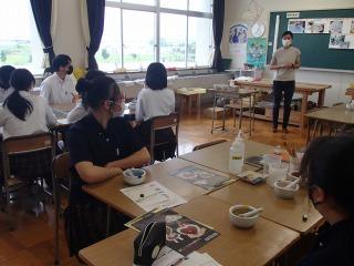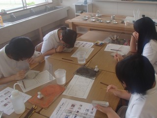 九谷焼研修所の先生に来ていただき、九谷焼の上絵付体験を行いました。