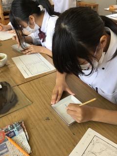 九谷焼研修所の川浦先生に来ていただき、小皿の絵付けを体験しました。