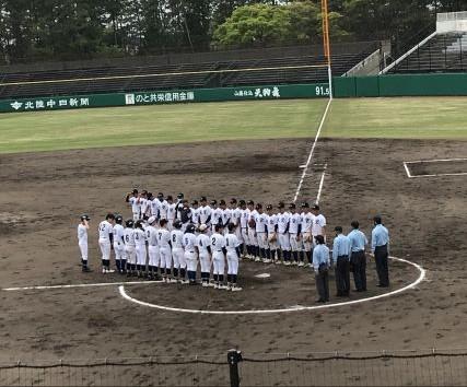 宝達高校と連合を組み、夏の大会に挑みました。今大会は野球部ではない生徒にも協力してもらい、この1か月間練習に取り組んできました。試合ではピッチャーである小泉選手(3年生)が力投し、周りを引っ張っていました。結果は上の通りになりましたが、チーム一丸となって試合に臨むことができました。応援してくださった方々、本当にありがとうございました。
