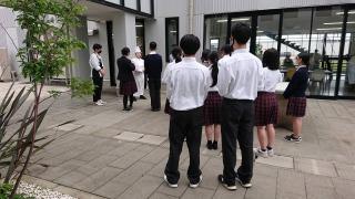 生徒の皆さんの元気な挨拶と温かい拍手に迎えて頂きました。