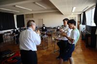 5/9(火)中間テスト1週間前になり、放課後に5ゼミ決起集会を行いました。三ッ村先生がまず5ゼミ(5段階評価の5を目指す学習会)の説明を行い、参加した生徒はテストに向けての決意を新たにしました。