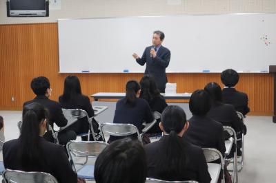 卒業を控える3年生を対象に「労働条件セミナー」を行いました。生徒は、労働時間・労働賃金等の労働条件を巡るトラブルの対処法を学習しました。初めて聞く内容が多く、進路指導課の大倉先生の話に聞き入っていました。