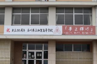 創立50周年を記念して、校舎2階に看板が設置されました。