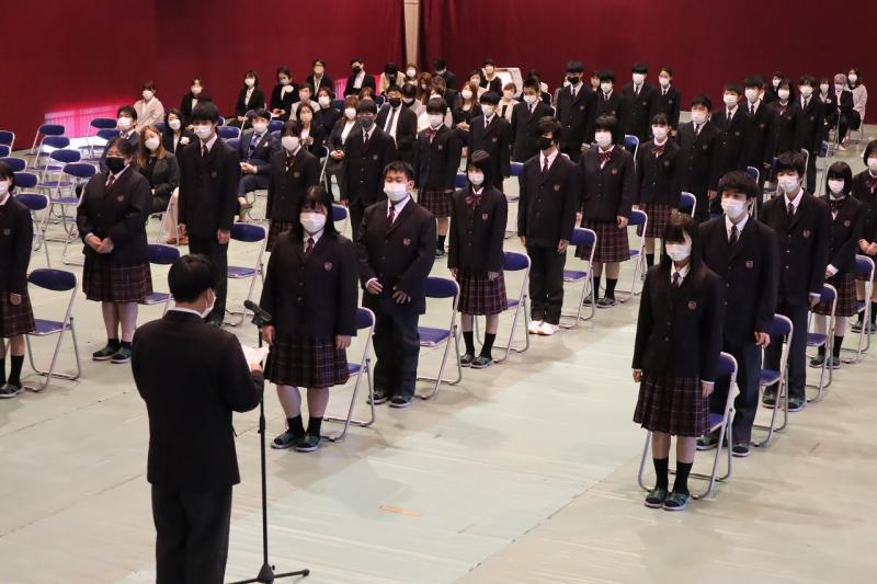新型コロナウイルス感染症への対策を行いながら、保護者の皆様にもご来場頂き式を挙行できましたこと、大変嬉しく思います。