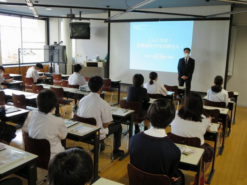 また、南部中学校出身の本校教員から、加賀高校についてお話しました。