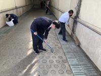 蒸し暑い中での活動でしたが、なかなか落ちない汚れを激落ちくんできれいに清掃してくれました。生徒の皆さん、お疲れさまでした。