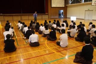 生徒の皆さんの元気な挨拶と温かい拍手に迎えて頂きました。