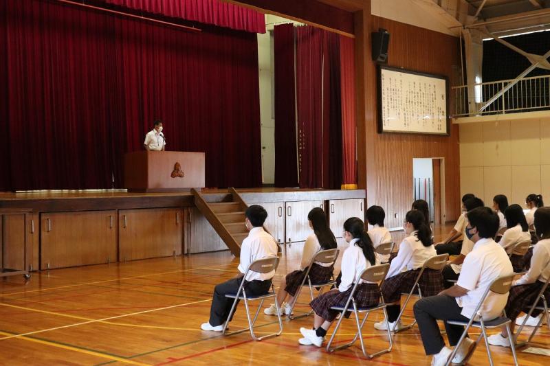 校長から、コロナ感染対策を徹底すること、身体と心の健康を守ることの2点について話がありました。