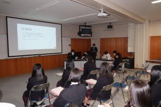 「産業社会と人間」の授業内で2~4人の班に分かれ、加賀市・小松市の企業について調べたことをプレゼンテーションソフトを利用してすべての班が発表しました。