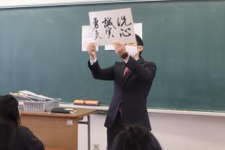 「洗心・誠実・勇気」を生徒に披露しました。
