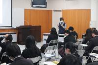 12/6(水)5~6限目、1年生を対象に「お仕事体験フェア」を行い、各自が希望した2つの職種を体験しました。大学・短大・専門学校の方から直接話を聞き、実際に体験することで、自己の進路実現に向け意識を高めることができました。