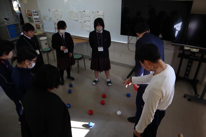 結果はみんなで確認 それぞれの投げ方でボッチャを楽しみます