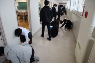 友人とどちらが綺麗に拭くことができるか競い合う生徒、一人で黙々と作業する生徒など、様々なスタイルで取り組んでいました。参加した生徒全員が丁寧に窓を拭いていました。