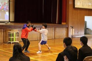 生徒の皆さんの元気な挨拶と温かい拍手に迎えて頂きました。