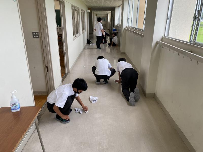 学校では、保護者懇談に向けて廊下の清掃を実施しました。