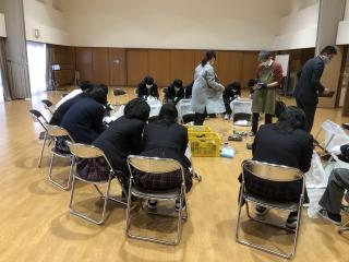 今回は動橋地区会館での糸切りと、本校校内の物品整理です。