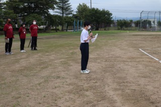 体育委員長 今村 明直さんが競技上の注意について説明しました。