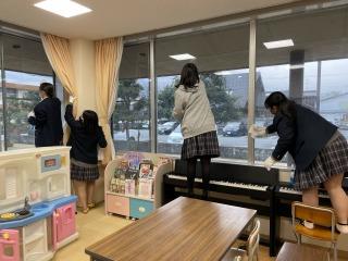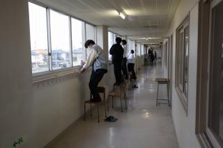 友人とどちらが綺麗に拭くことができるか競い合う生徒、一人で黙々と作業する生徒など、様々なスタイルで取り組んでいました。参加した生徒全員が丁寧に窓を拭いていました。