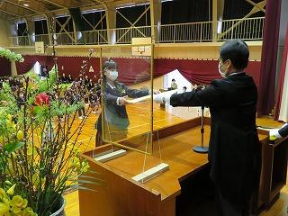 送辞を在校生代表 中田樹里さん、答辞を卒業生代表 大森挑夢さんが述べました。