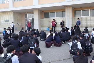 生徒の皆さんの元気な挨拶と温かい拍手に迎えて頂きました。