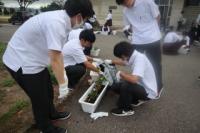 9/22(金)第5回KCB活動を行いました。今回は生徒66名、教職員16名でプランターの花植えを行いました。暑さも多少和らいだおかげで快適に作業ができ、60以上の綺麗な鉢ができました。日日草・マリーゴールド・ジニア・テルスタークリムソンを鉢植えしました。