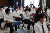 7/4(火)2年生を対象に「インターンシップ結団式」を実施しました。7/5(水)から3日間、保育所、ホテル、福祉施設、図書館、工場などでインターンシップ(就業体験学習)を行います。学校長、進路指導課、担任から激励の言葉がありました。 2年生 がんばれ!