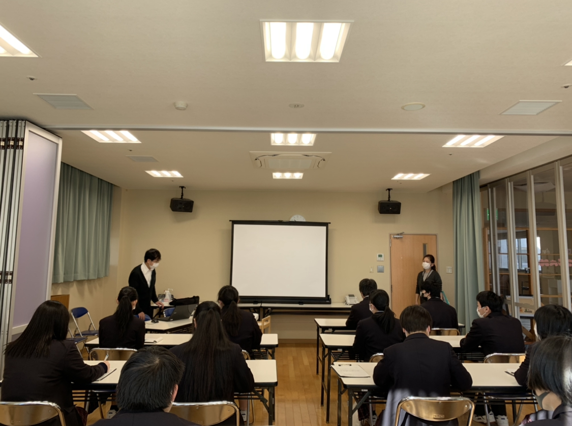 卒業を控える3年生を対象に「労働条件セミナー」を行いました。生徒は、労働時間・労働賃金等の労働条件を巡るトラブルの対処法を学習しました。初めて聞く内容が多く、進路指導課の大倉先生の話に聞き入っていました。