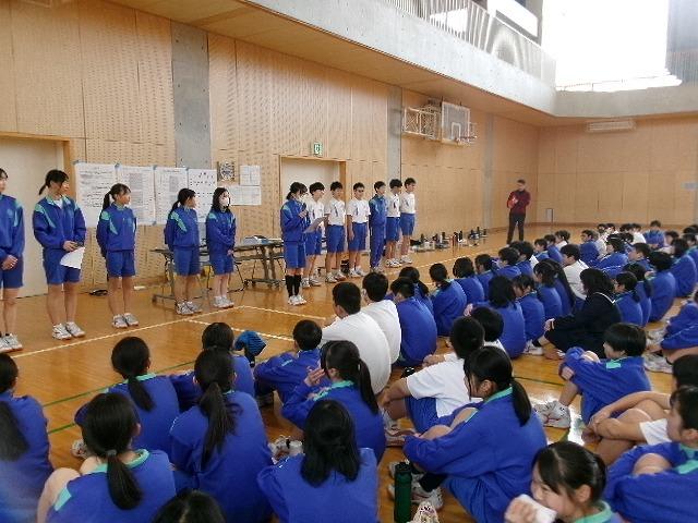どちらの種目も、プレイヤー(ランナー)はもちろんのこと、周りの生徒たちの全力で応援している姿は、見ていて微笑ましかったです。河北台中の生徒たちの明るくて、子どもらしい面が体育館内じゅうにあふれていました。何事にも素直に全力で、前向きに取り組む姿勢のまま、成長していってほしいと願います。